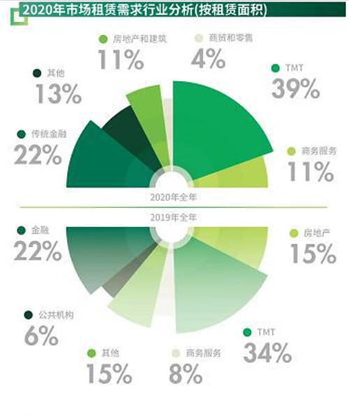 寫字樓空置率下降, TMT、金融“消化”六成租賃面積