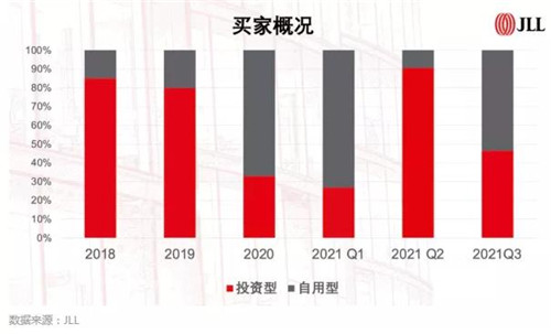 從物業(yè)類型分析,2021年第三季度辦公樓成交占總成交額的57.6%,環(huán)比上漲14.2%。仲量聯(lián)行認為,一線城市強勁的辦公租賃需求讓投資者對于這一資產(chǎn)類別保有較強信心。