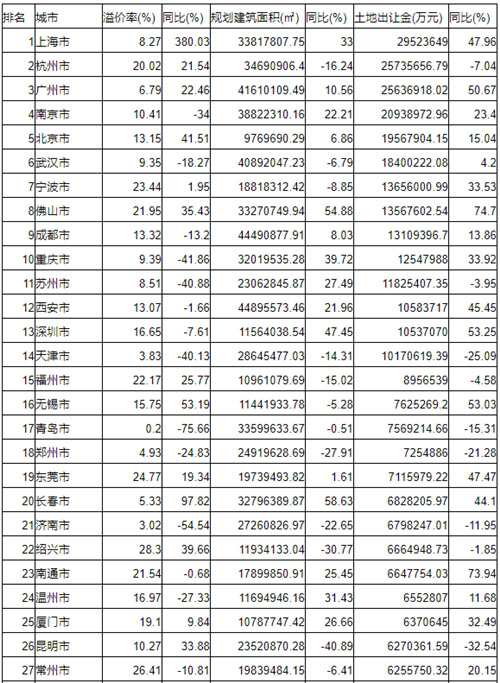 “土地溢價率上行主要體現(xiàn)了部分城市,雖然整體土地市場地價依然未全面上漲,但部分城市部分土地的價格已經(jīng)達到了歷史高點!睆埓髠フf。