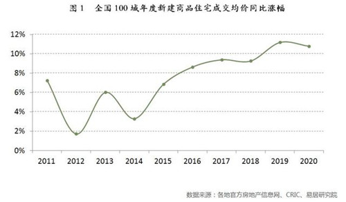 3日,上海易居房地產研究院發(fā)布《2020年全國百城房價報告》(下稱《報告》)!秷蟾妗贩Q,2020年,全國100個城市新建商品住宅成交均價為16018元/平方米,同比上漲10.8%。其中,一線城市新建商品住宅成交均價為44968元/平方米,同比漲2.7%;32個二線城市新建商品住宅成交均價為15599元/平方米,同比漲9.6%。專家指出,2020年房價漲幅略超預期,百城房價漲幅位于兩位數,說明穩(wěn)房價依然面臨各類壓力。