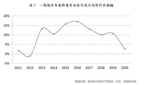 《報告》顯示,二線城市漲幅略有擴大。2020年,32個二線城市新建商品住宅成交均價為15599元/平方米,同比上漲9.6%。觀察最近10年漲幅,2020年漲幅處于中間位水平。不過,對比2019年數據,可以看出,其漲幅略有擴大。隨著二線城市戶籍政策的放開和人口的加快導入,此類城市購房需求預計會繼續(xù)釋放,所以房價漲易跌難。尤其是新一線城市,后續(xù)穩(wěn)房價工作需要繼續(xù)堅持。