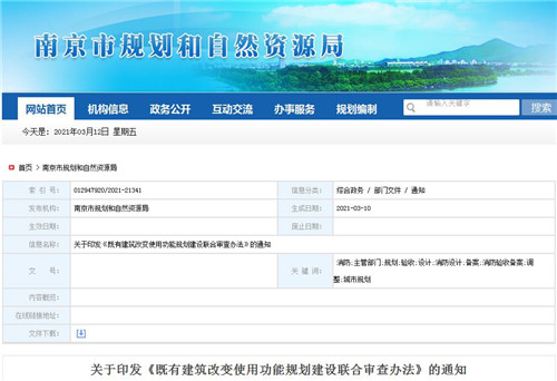 房訊網(wǎng)訊 3月10日,南京市規(guī)劃和自然資源局南京市城鄉(xiāng)建設(shè)委員會(huì)發(fā)布了《既有建筑改變使用功能規(guī)劃建設(shè)聯(lián)合審查辦法》的通知,4月9日起正式施行。