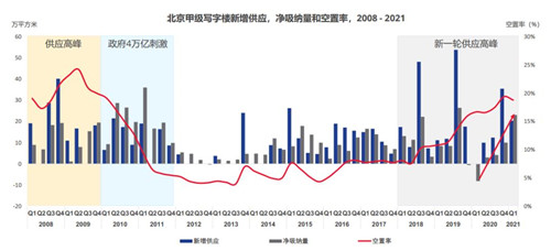 高力國際分析認(rèn)為,大幅的季度新增需求反彈或?qū)⒉豢沙掷m(xù),季度新增需求后續(xù)將會(huì)逐步回歸到疫情前的水平。我們依然維持市場處于三期疊加的判斷,依然維持宏觀經(jīng)濟(jì)增長穩(wěn)步復(fù)蘇,北京疫情防控有效和寫字樓需求中性釋放的三個(gè)基礎(chǔ)宏觀條件,并預(yù)計(jì)空置率在2021年觸頂和租金探底的基本研判。