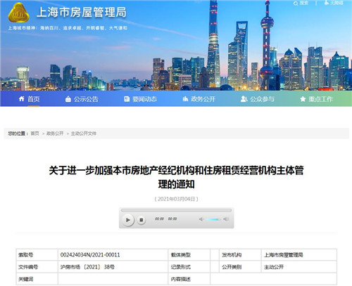 上海市房屋管理局關于進一步加強本市房地產經紀機構和住房租賃經營機構主體管理的通知