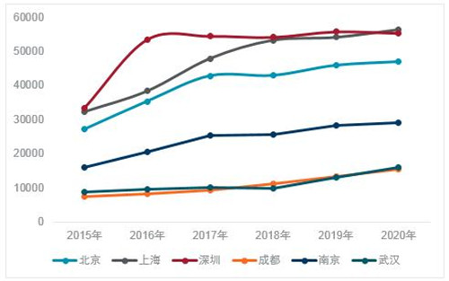 在一線城市,TMT行業(yè)過去五年在寫字樓租賃市場扮演了重要角色,戴德梁行數(shù)據(jù)顯示,從2016年至2020年,北上廣深四個一線城市中TMT行業(yè)的租賃占比分別達到36%,20.3%,28.3%及23%。隨著政府在鼓勵科研創(chuàng)新領域政策的不斷落實,未來TMT行業(yè)將繼續(xù)成為寫字樓租賃市場的中堅力量。