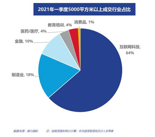 高力國際在整理了北京約150家頭部互聯(lián)網(wǎng)科技公司在京辦公租賃情況后發(fā)現(xiàn),當(dāng)前頭部互聯(lián)網(wǎng)公司辦公面積(包含自用和租賃面積)共約525萬平方米,其中前20的公司辦公面積約422萬平方米,占總互聯(lián)網(wǎng)公司辦公面積的80%。有42%的互聯(lián)網(wǎng)公司位于上地,位于東西兩大組團內(nèi)的互聯(lián)網(wǎng)企業(yè)占比高達72%。同時,互聯(lián)網(wǎng)公司更加集中于產(chǎn)業(yè)園市場,有67%的互聯(lián)網(wǎng)公司位于產(chǎn)業(yè)園內(nèi),位于甲級寫字樓的比例僅8%。在租金方面,互聯(lián)網(wǎng)科技公司目前平均租金水平相對較低,平均租金約190元每月每平米,低于整體辦公市場223元每月每平米的水平。此外,當(dāng)前互聯(lián)網(wǎng)公司依舊維持了迅猛的擴張速度。在2020年全年5000平米以上的大宗租賃成交中,互聯(lián)網(wǎng)科技公司的成交面積占比達到42%,遠高于第二名金融行業(yè)的18.8%,在今年一季度這個比例更是上升到64%。這個比例還沒有計入去年融資如火如荼的在線教育行業(yè),如果把在線教育新租面積也計入的話,2020年的互聯(lián)網(wǎng)科技行業(yè)占比超過50%,今年一季度的占比更是接近70%。