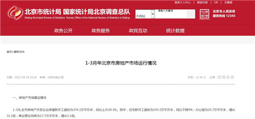 房訊網(wǎng)訊 4月19日,北京市統(tǒng)計局發(fā)布1-3月年北京市房地產(chǎn)市場運行情況,統(tǒng)計數(shù)據(jù)顯示,一季度北京市商品房銷售面積216.5萬平方米,同比增長1.5倍。