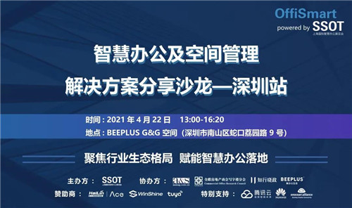 本次OffiSmart智慧辦公及空間管理解決方案分享沙龍-4.22深圳站特邀騰訊云、華為、EnOcean聯(lián)盟、海林智能、Winshine、涂鴉智能等企業(yè)探討智慧辦公及商業(yè)空間管理的未來(lái)趨勢(shì),分享創(chuàng)新技術(shù)與落地案例,呈現(xiàn)解決用戶實(shí)際需求的智慧辦公整體解決方案,助力業(yè)者應(yīng)對(duì)快速更迭的商業(yè)環(huán)境,領(lǐng)跑智慧辦公行業(yè)市場(chǎng)復(fù)蘇。
