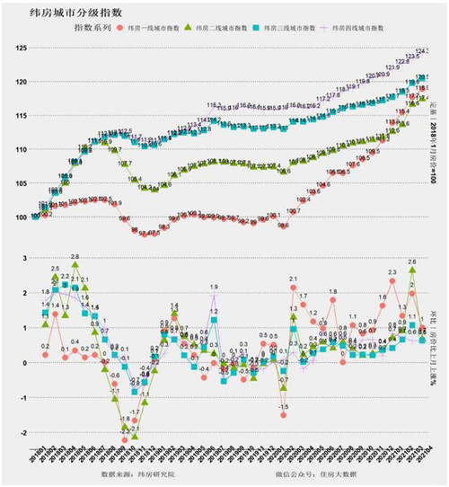 總體看,國(guó)家統(tǒng)計(jì)局?jǐn)?shù)據(jù)顯示4月新房漲幅擴(kuò)大。而緯房指數(shù)二手房大數(shù)據(jù)分析顯示,4月各類城市房?jī)r(jià)仍以上漲為主,但漲速較3月有所降低。