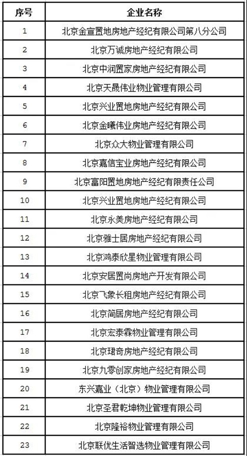 據(jù)安居北京消息,5月19日,北京市、區(qū)住建部門結(jié)合日常監(jiān)管和信訪投訴處理情況,梳理出第三批共23家重點(diǎn)關(guān)注企業(yè)名單,提示廣大消費(fèi)者謹(jǐn)慎選擇。