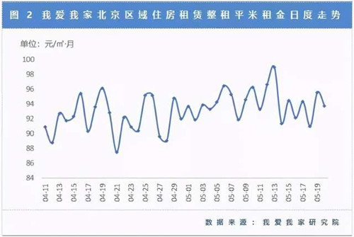 我愛我家研究院數(shù)據(jù)顯示,今年5月1日-20日,我愛我家北京區(qū)域的整租房源的租金為94.2元/平方米/月,環(huán)比上漲2.4%,同比上漲6.7%,比2019年同期微漲1.2%;整租套均租金為5943元/套/月,環(huán)比上漲2.3%,同比上漲6.4%,比2019年同期微跌1.9%。