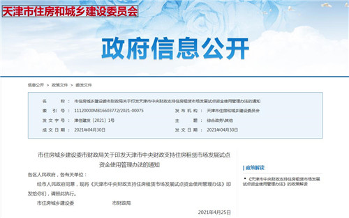 天津市中央財(cái)政支持住房租賃市場(chǎng)發(fā)展試點(diǎn)資金使用管理辦法