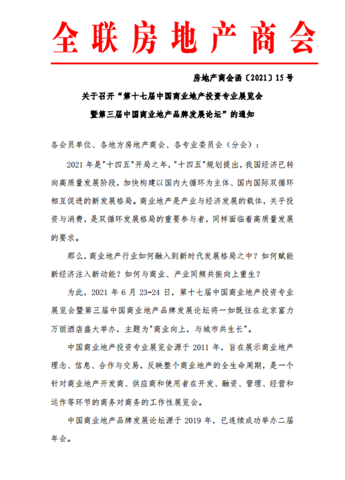 房訊網(wǎng)訊 2021年6月23-24日,第十七屆中國商業(yè)地產(chǎn)投資專業(yè)展覽會暨第三屆中國商業(yè)地產(chǎn)品牌發(fā)展論壇將一如既往在北京富力萬麗酒店盛大舉辦,主題為"商業(yè)向上,與城市共生長"。
