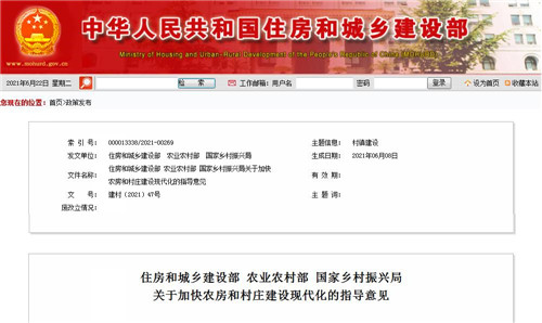 房訊網(wǎng)訊 為深入貫徹落實(shí)黨的十九屆五中全會(huì)精神和“十四五”規(guī)劃綱要關(guān)于實(shí)施鄉(xiāng)村建設(shè)行動(dòng)的部署要求,加快推進(jìn)農(nóng)房和村莊建設(shè)現(xiàn)代化,提高農(nóng)房品質(zhì),提升鄉(xiāng)村建設(shè)水平,近日,住房和城鄉(xiāng)建設(shè)部、農(nóng)業(yè)農(nóng)村部、國(guó)家鄉(xiāng)村振興局聯(lián)合印發(fā)《關(guān)于加快農(nóng)房和村莊建設(shè)現(xiàn)代化的指導(dǎo)意見(jiàn)》,從生態(tài)友好、農(nóng)房設(shè)計(jì)建造水平、營(yíng)造留住“鄉(xiāng)愁”環(huán)境等12個(gè)方面提出了加快農(nóng)房和村莊建設(shè)現(xiàn)代化的具體要求,并指出要因地制宜、分省制定實(shí)施方案、開(kāi)展試點(diǎn)做好組織實(shí)施工作。
