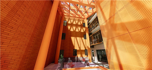 天通科技園的設(shè)計(jì)理念為“共享、科技、活力”,在場(chǎng)景規(guī)劃上引入了公共庭院、三角積木景觀廊道、共享直播間、共享會(huì)議室等開(kāi)放交流空間,并且規(guī)劃了商務(wù)、商業(yè)配套空間,如食堂、健身房、多功能活動(dòng)廳等。空間的豐富規(guī)劃可滿足企業(yè)在工作、創(chuàng)意交流、活動(dòng)發(fā)布等不同的場(chǎng)景自由切換。