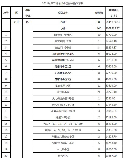 房訊網(wǎng)訊 6月1日,北京市住建委公布2021年第二批老舊小區(qū)綜合整治項目名單。加上首批已經(jīng)公布的158個老舊小區(qū),截至目前,今年已經(jīng)有308個老舊小區(qū)確定納入改造計劃。