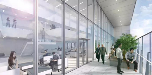 而在建筑設(shè)計(jì)上,也為打造社區(qū)環(huán)境提供新式空間組合。打破以往大平層辦公室的設(shè)計(jì)思路,加裝挑空的陽臺(tái)、挑空的室內(nèi)共享空間,在打通空間、為空間帶來靈動(dòng)性的同時(shí),也可以為企業(yè)員工帶來辦公+生活的新體驗(yàn)。