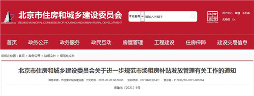 北京市住房和城鄉(xiāng)建設委員會關(guān)于進一步規(guī)范市場租房補貼發(fā)放管理有關(guān)工作的通知
