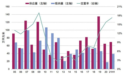 2021年二季度,北京寫字樓市場(chǎng)的租賃需求呈現(xiàn)井噴,市場(chǎng)活躍度持續(xù)提升,企業(yè)新租、擴(kuò)租、搬遷等市場(chǎng)活動(dòng)促成了若干宗重要成交。二季度,北京甲級(jí)寫字樓市場(chǎng)共迎來四座新項(xiàng)目入市,供應(yīng)量約為37.6萬平方米;而本季度凈吸納量繼續(xù)快速提升,約為22.4萬平方米,環(huán)比增長(zhǎng)34.7%、約為去年同期的七倍。北京甲級(jí)寫字樓平均租金為每月每平方米人民幣341.3元,平均租金指數(shù)環(huán)比、同比分別下降0.3%、3.6%,但租金降幅有所收窄。全市空置率為17.3%,環(huán)比、同比分別上漲0.7、3.6個(gè)百分點(diǎn)。就2021年上半年而言,北京寫字樓市場(chǎng)已經(jīng)完全擺脫疫情的影響,市場(chǎng)需求得到充分釋放,但由于下半年新增供應(yīng)量仍然巨大,未來一段時(shí)間全市寫字樓仍將面臨較大去化壓力。