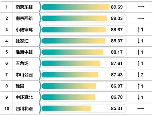 報(bào)告顯示,2021年度上半年上海市10個(gè)重點(diǎn)商圈購(gòu)物誠(chéng)信指數(shù)平均為87.80,排名前三的商圈為南京東路商業(yè)中心、南京西路商業(yè)中心和小陸家嘴商業(yè)中心。