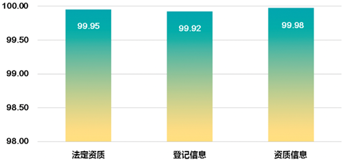 法定資質(zhì)指標(biāo)主要由登記信息和資質(zhì)信息2個(gè)三級(jí)指標(biāo)構(gòu)成,據(jù)調(diào)查分析,十大商圈內(nèi)企業(yè)絕大多數(shù)依法取得了提供服務(wù)的執(zhí)照和經(jīng)營(yíng)許可等資質(zhì)、證照齊全,無(wú)證經(jīng)營(yíng)、超范圍經(jīng)營(yíng)等現(xiàn)象極少。