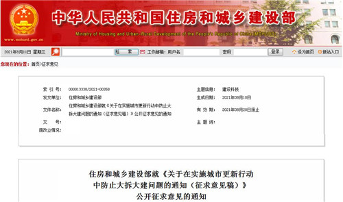 房訊網(wǎng)訊 為深入貫徹黨的十九屆五中全會(huì)精神和“十四五”規(guī)劃綱要部署要求,指導(dǎo)各地積極穩(wěn)妥實(shí)施城市更新行動(dòng),防止沿用過度房地產(chǎn)化的開發(fā)建設(shè)方式,大拆大建,急功近利等問題,8月10日,住建部研究起草了《關(guān)于在實(shí)施城市更新行動(dòng)中防止大拆大建問題的通知》,向社會(huì)公開征求意見。