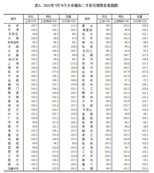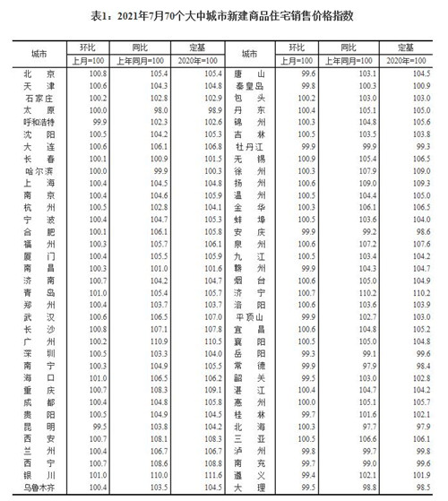 房訊網(wǎng)訊 8月16日,國家統(tǒng)計局發(fā)布2021年7月份70個大中城市商品住宅銷售價格變動情況,數(shù)據(jù)分析顯示,7月份全國70個大中城市商品住宅銷售價格環(huán)比、同比漲幅總體回落。