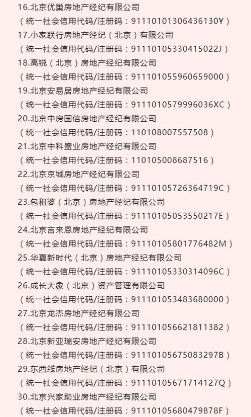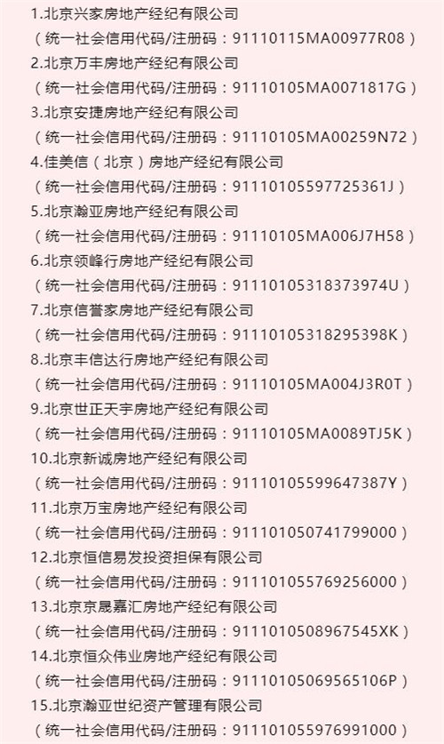 公告顯示,朝陽區(qū)北京興家房地產(chǎn)經(jīng)紀(jì)有限公司、北京萬豐房地產(chǎn)經(jīng)紀(jì)有限公司等43家房地產(chǎn)經(jīng)紀(jì)機(jī)構(gòu)未在備案地址經(jīng)營,且因“通過登記的住所或者經(jīng)營場所無法聯(lián)系”被列入北京市市場監(jiān)督管理局經(jīng)營異常名錄。
