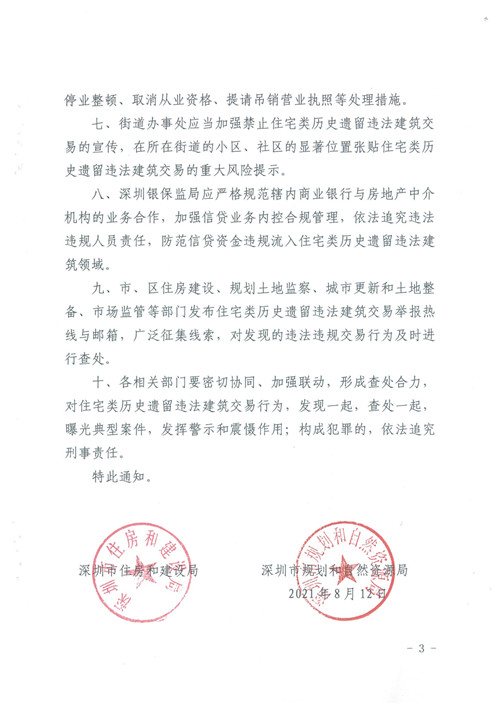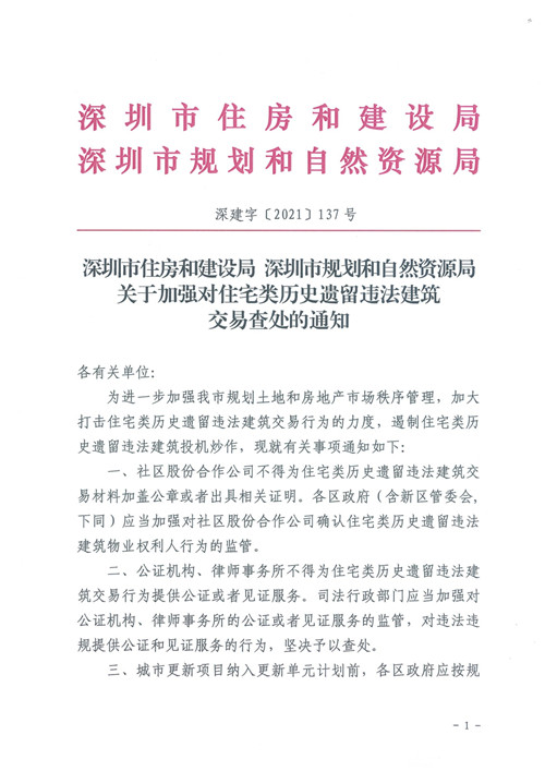 房訊網(wǎng)訊 近日,深圳市住房和建設(shè)局、深圳市規(guī)劃和自然資源局發(fā)布《關(guān)于加強(qiáng)對(duì)住宅類歷史遺留違法建筑交易查處的通知》,要求城市更新項(xiàng)目納入更新單元計(jì)劃前,各區(qū)政府應(yīng)按規(guī)定組織開展住宅類歷史遺留違法建筑物業(yè)權(quán)利人核實(shí)工作;對(duì)未開展物業(yè)權(quán)利人核實(shí)且尚未確認(rèn)實(shí)施主體的更新項(xiàng)目,由各區(qū)政府在本通知發(fā)布之日起6個(gè)月內(nèi)組織補(bǔ)充開展物業(yè)權(quán)利人核實(shí),防范城市更新過程中回遷房炒作。