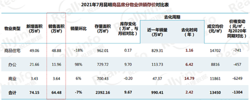 昆明銳理數(shù)據(jù)也顯示,7月昆明商品住宅成交均價環(huán)14702元/平方米,創(chuàng)過去一年來新低。其中呈貢、官南、滇池跌幅最大,其他片區(qū)降幅不明顯。庫存量持續(xù)走高,商品房住宅庫存從2017年的約476.22萬平方米,增加至約962.01萬平方米,庫存翻倍,去化周期也由6.87個月增至13.92個月。