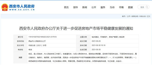 西安市人民政府辦公廳關(guān)于進一步促進房地產(chǎn)市場平穩(wěn)健康發(fā)展的通知