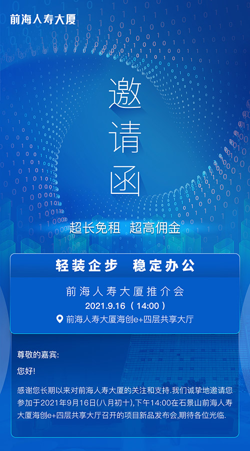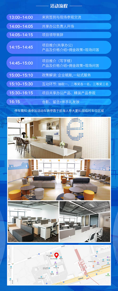房訊網(wǎng)訊 9月16日下午,前海人壽大廈推介會將在項(xiàng)目4層海創(chuàng)e+共享大廳舉辦,誠摯邀約北京渠道代理精英、選址企業(yè)代表蒞臨。項(xiàng)目方將就樓宇精裝辦公產(chǎn)品以及共享辦公產(chǎn)品海創(chuàng)e+進(jìn)行詳細(xì)的介紹,并分享項(xiàng)目配套熱點(diǎn)、優(yōu)惠政策、招商策略等內(nèi)容。