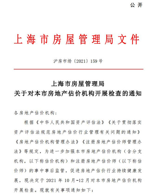 房訊網(wǎng)訊 近日,上海市發(fā)布管理局發(fā)布對(duì)本市房地產(chǎn)估價(jià)機(jī)構(gòu)開展檢查的通知稱,為進(jìn)一步加強(qiáng)本市房地產(chǎn)估價(jià)機(jī)構(gòu)(含分支機(jī)構(gòu),以下稱估價(jià)機(jī)構(gòu))和注冊(cè)房地產(chǎn)估價(jià)師(以下稱估價(jià)師)的事中事后監(jiān)管,促進(jìn)房地產(chǎn)估價(jià)行業(yè)持續(xù)健康發(fā)展,決定于2021年10月-12月對(duì)本市房地產(chǎn)估價(jià)機(jī)構(gòu)開展檢查。