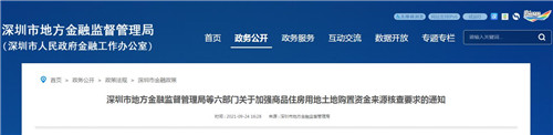 深圳市地方金融監(jiān)督管理局等六部門(mén)關(guān)于加強(qiáng)商品住房用地土地購(gòu)置資金來(lái)源核查要求的通知