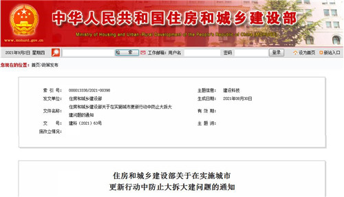 房訊網(wǎng)訊 8月31日,住房與城鄉(xiāng)建設(shè)部發(fā)布《關(guān)于在實施城市更新行動中防止大拆大建問題的通知》,要求在實施城市更新行動中,堅持劃定底線,防止城市更新變形走樣。