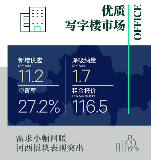 “第三季度南京寫字樓市場租賃需求小幅回暖,金融及科技等主導(dǎo)行業(yè)表現(xiàn)穩(wěn)健,升級搬遷需求得到釋放;營商環(huán)境不斷優(yōu)化,對于新設(shè)企業(yè)的吸引力穩(wěn)步提升。未來六個月,南京寫字樓市場約有11.3萬平方米的新增供應(yīng),受到大體量項(xiàng)目入市的影響,河西板塊將面臨短期市場去化壓力。整體來看,寫字樓市場將以去化現(xiàn)有存量為主基調(diào),空置率有望穩(wěn)定下行,而租金調(diào)整仍將持續(xù)一段時間!