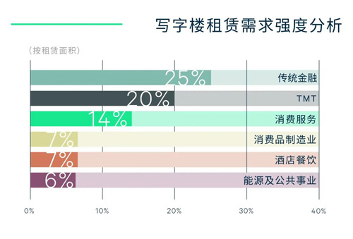需求方面,傳統(tǒng)金融行業(yè)穩(wěn)居首位,保險企業(yè)跨板塊搬遷活躍態(tài)勢持續(xù),亦有小型互聯(lián)網(wǎng)保險選擇由園區(qū)向傳統(tǒng)寫字樓搬遷升級,而來自私募基金及資管行業(yè)的新設(shè)需求則分布于河西及江寧板塊;TMT緊隨其后,盡管行業(yè)進入調(diào)整期,但以互聯(lián)網(wǎng)平臺與新媒體為首的科技公司紛紛于本季完成板塊內(nèi)部升級搬遷,同時電商及軟件開發(fā)企業(yè)則偏好選址非核心板塊完成新設(shè)成交;此外,位于新街口板塊核心區(qū)位、交通便捷且暫處高空置率的項目通過吸納來自美容、留學(xué)等消費服務(wù)類租戶加速去化,推升此類租賃需求本季躍居第三位;而受益于當(dāng)?shù)卣猩桃Y的積極推進,以食品、新能源汽車為首的消費品制造業(yè)企業(yè)于多個板塊的優(yōu)質(zhì)樓宇廣泛布局。