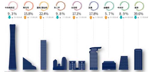 4 因內(nèi)部整合導(dǎo)致部分集團性企業(yè)子公司退租重組合并,多個商圈空置率有明顯上漲致使整體市場空置率達到15.6%。