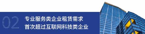 據(jù)高力國(guó)際統(tǒng)計(jì),季內(nèi)大宗租賃成交(單個(gè)租賃成交面積超1,000平方米以上)活躍度較上季度上升約20%。值得關(guān)注的是,專業(yè)服務(wù)類企業(yè)租賃在季內(nèi)表現(xiàn)亮眼,其需求在今年季度中首次超過互聯(lián)網(wǎng)科技類行業(yè),環(huán)比增長(zhǎng)25%。