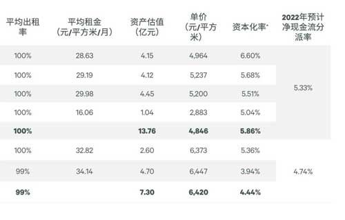 數(shù)據(jù)來源:相關(guān)REIT招募說明書,CBRE研究部,2022年10月