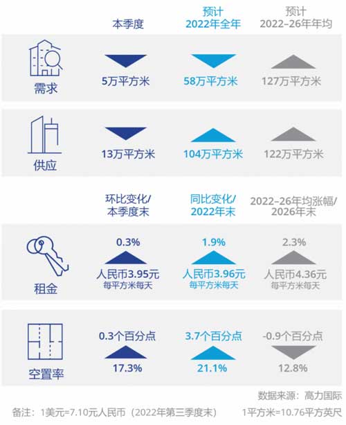 2022年第三季度上海產(chǎn)業(yè)園區(qū)市場受二季度封控的后續(xù)影響,部分企業(yè)通過延緩擴租或縮減辦公面積等措施控本增效。本季度錄得整體產(chǎn)業(yè)園區(qū)的凈吸納量有所下降、空置率略微抬升,但平均租金仍保持穩(wěn)中微升,預期在需求回暖之前租金仍將繼續(xù)橫盤。高力國際對上海產(chǎn)業(yè)園區(qū)市場的走勢保持樂觀展望。
