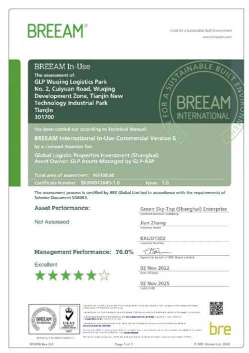 普洛斯武清物流園獲BREEAM In-Use“卓越”級(jí)認(rèn)證