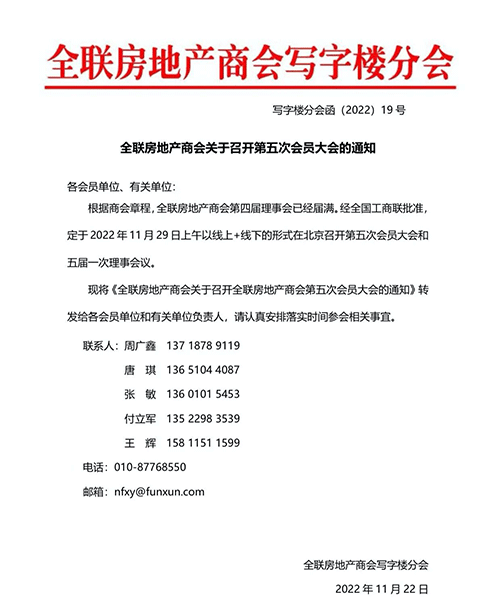 關(guān)于召開全聯(lián)房地產(chǎn)商會第五次