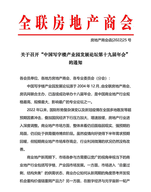 [提要]通知|關于召開“中國寫字樓產業(yè)園發(fā)展論壇第十九屆年會”的通知