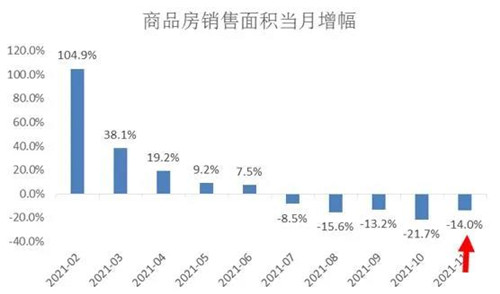 同時,房地產(chǎn)企業(yè)的融資中,開發(fā)貸和國內(nèi)債券減少。1-11月,房地產(chǎn)企業(yè)開發(fā)貸款2.16萬億元,同比下降10.8%,連續(xù)6月同比減少。2021年,房企發(fā)行國內(nèi)債券6363億元,同比減少12%。積極的變化出現(xiàn)在11月和12月,國內(nèi)貸款的發(fā)放的數(shù)量出現(xiàn)了明顯的增加。