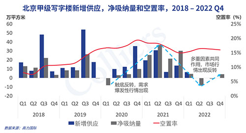 四季度北京再度受到疫情的影響,但無法阻止北京甲級(jí)寫字樓市場(chǎng)需求的結(jié)構(gòu)性恢復(fù),第四季度市場(chǎng)凈吸納量已經(jīng)轉(zhuǎn)正,達(dá)到4.2萬平方米,符合預(yù)判。