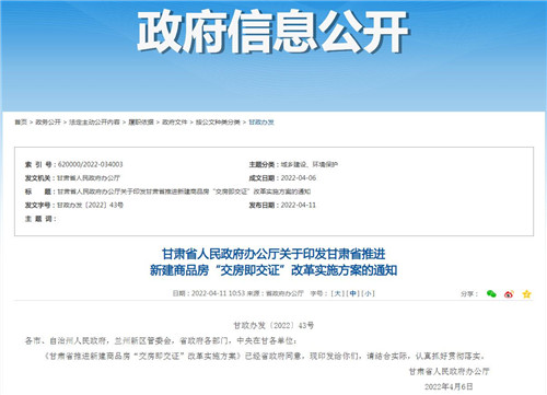 甘肅省推進(jìn)新建商品房“交房即交證”改革實施方案