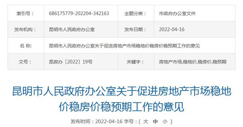 昆明市人民政府辦公室關(guān)于促進房地產(chǎn)市場穩(wěn)地價穩(wěn)房價穩(wěn)預(yù)期工作的意見