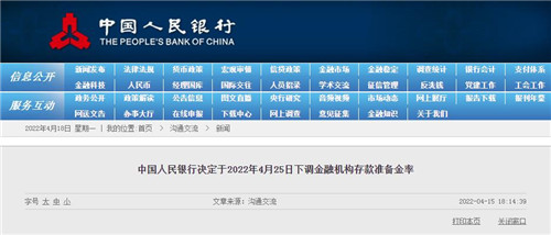 房訊網(wǎng)訊 4月15日,中國人民銀行宣布,為支持實體經(jīng)濟發(fā)展,促進綜合融資成本穩(wěn)中有降,決定于2022年4月25日下調(diào)金融機構(gòu)存款準(zhǔn)備金率0.25個百分點(不含已執(zhí)行5%存款準(zhǔn)備金率的金融機構(gòu))。