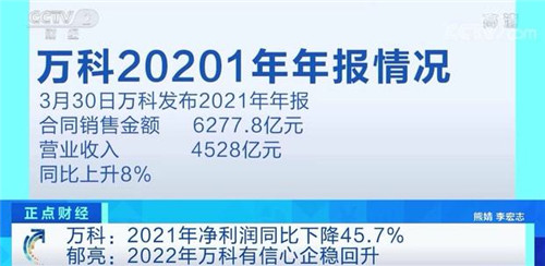最近,房地產(chǎn)上市公司的動(dòng)向成了市場(chǎng)熱議的話題。昨天晚間,萬(wàn)科發(fā)布年報(bào)顯示,2021年凈利潤(rùn)幾乎腰斬。今天上午,萬(wàn)科舉行2021年線上業(yè)績(jī)發(fā)布會(huì),萬(wàn)科董事會(huì)主席郁亮對(duì)投資者關(guān)心的業(yè)績(jī)下滑原因,做出了解釋。